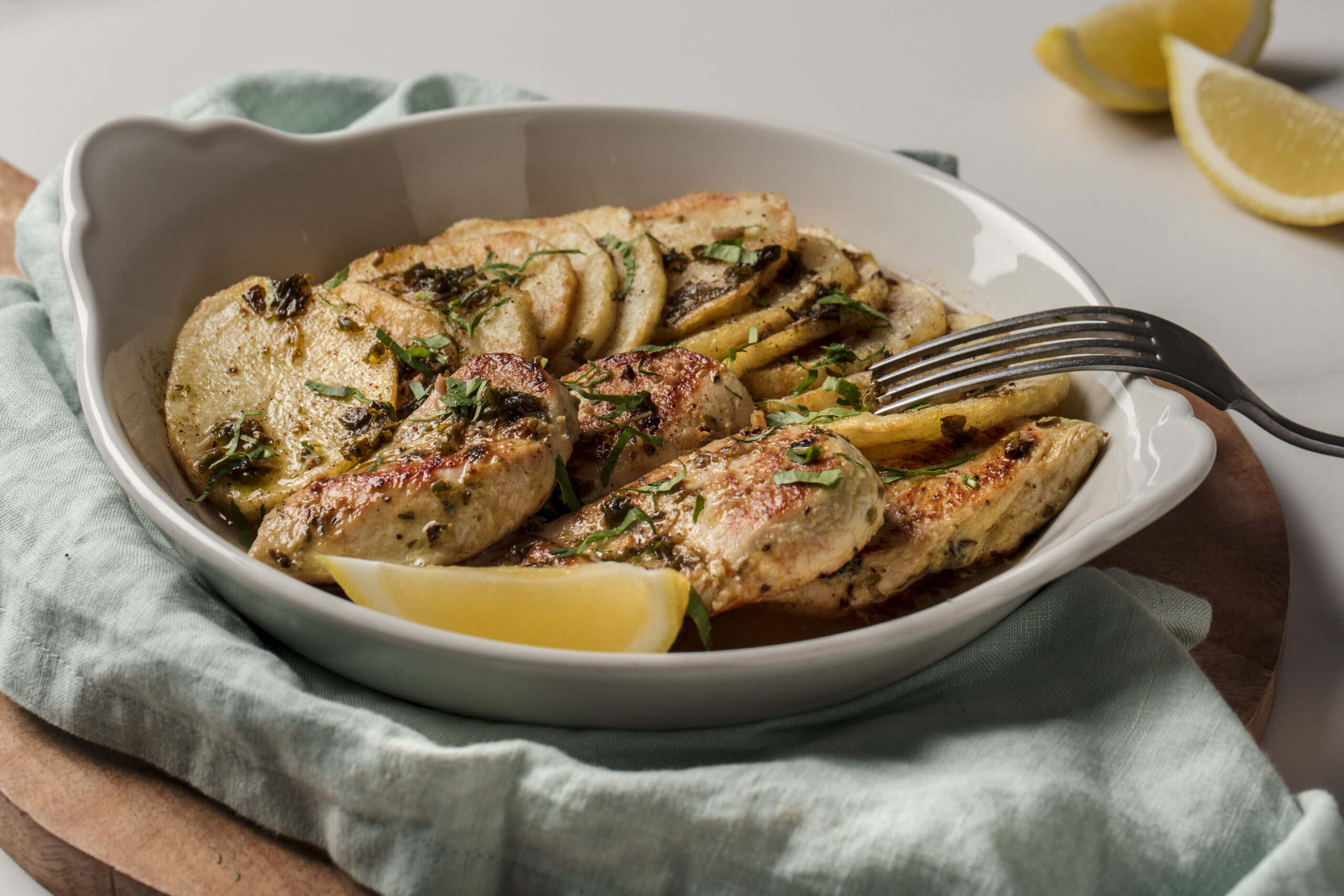 Marinated chicken with garlic, lemon and mixed spices served with potatoes