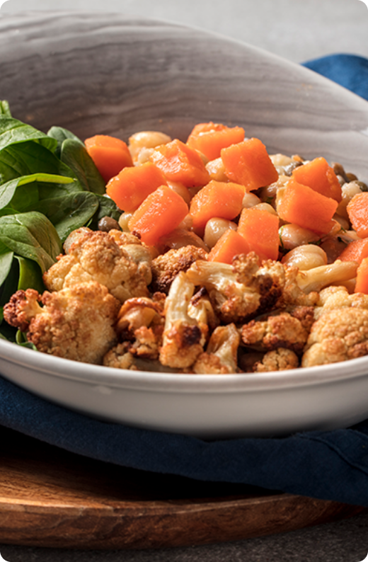 Sweet potato, lentil, roasted cauliflower, baby spinach, chickpeas and hot pepper powder served with our special orange dressing