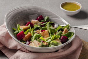 Beetroot, goat cheese, walnuts, purslane served with balsamic sauce