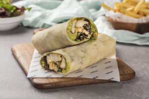 Chicken breast, mozzarella cheese, tomato, spinach and pesto sauce.