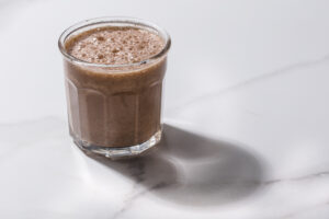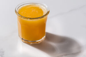 Grilled taouk , fries , iceberg , cocktail sauce served with fresh orange juice