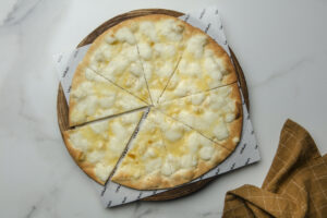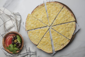 Sauce pizza, oregano , mozzarella cheese , zucchini , green pepper , eggplant , olives and mushrooms