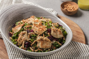 Quinoa mix, kale, almonds, dried cranberries and marinated grilled chicken served with balsamic dressing