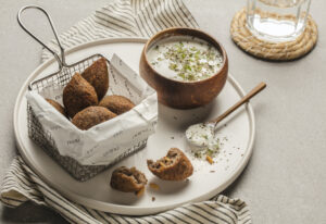 6 pcs of mixed burghul with minced meat served with tzakziki yoghurt