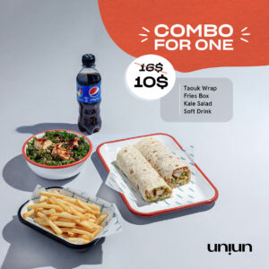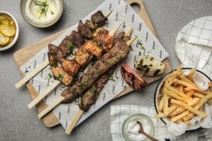 1 Skewer of taouk + 1 skewer of grilled fillet + 2 skewers of kafta with side hummus, fries, garlic and grilled vegetables