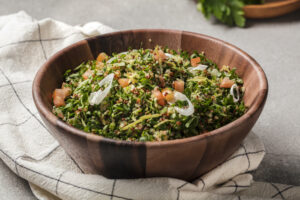 Quinoa, parsley, mint, tomatoes, spring onion served with lemon oil dressing