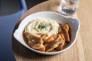 Grilled chicken breast, puree, served with blended vegetable sauce